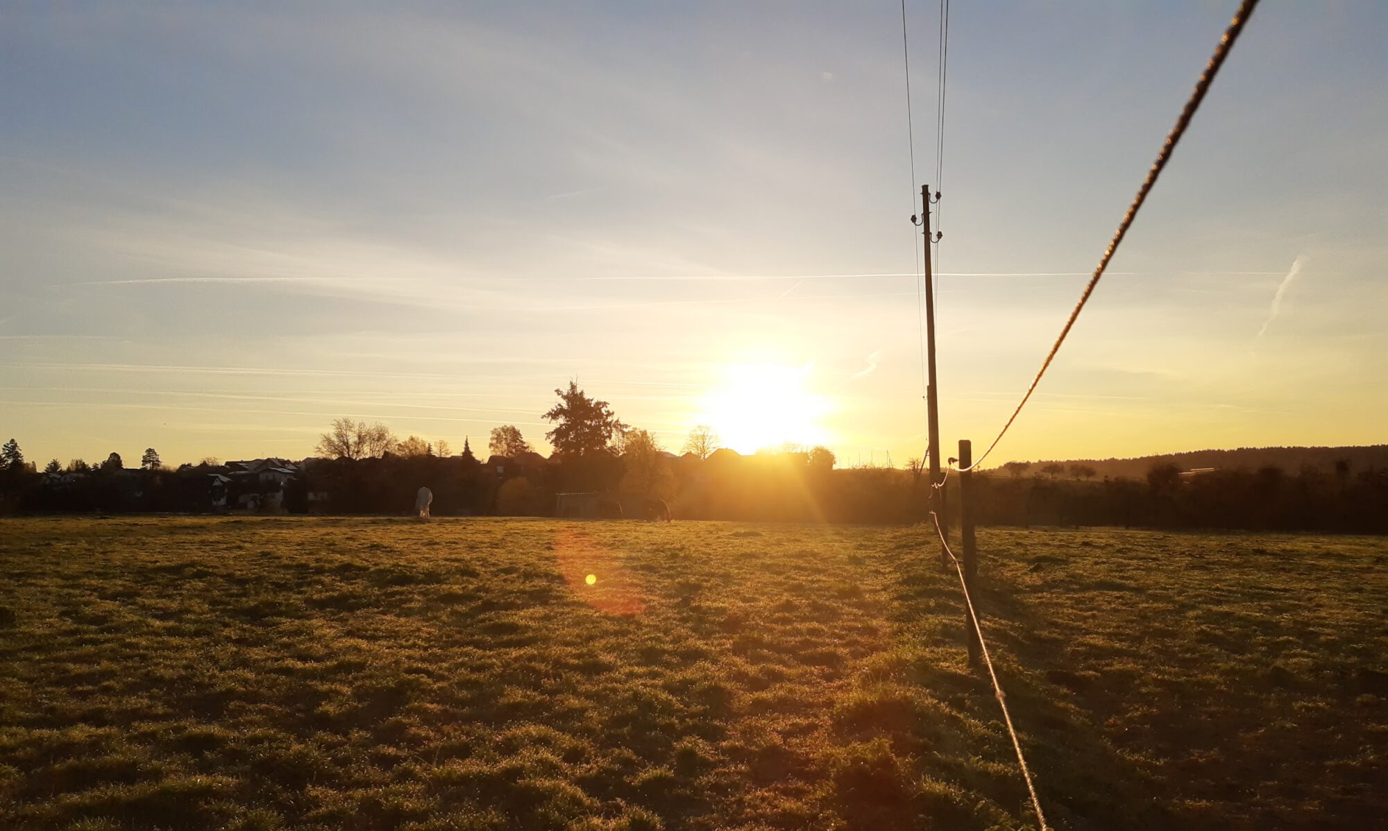 Frühlingshafte Morgensonne im April 2023. Im Vordergrund eine unserer Wallachgruppen.